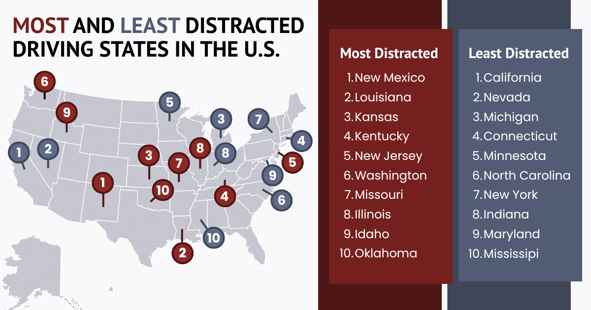 - New Mexico is officially the most distracted state in America and it also leads in fatal accidents involving distracted drivers.